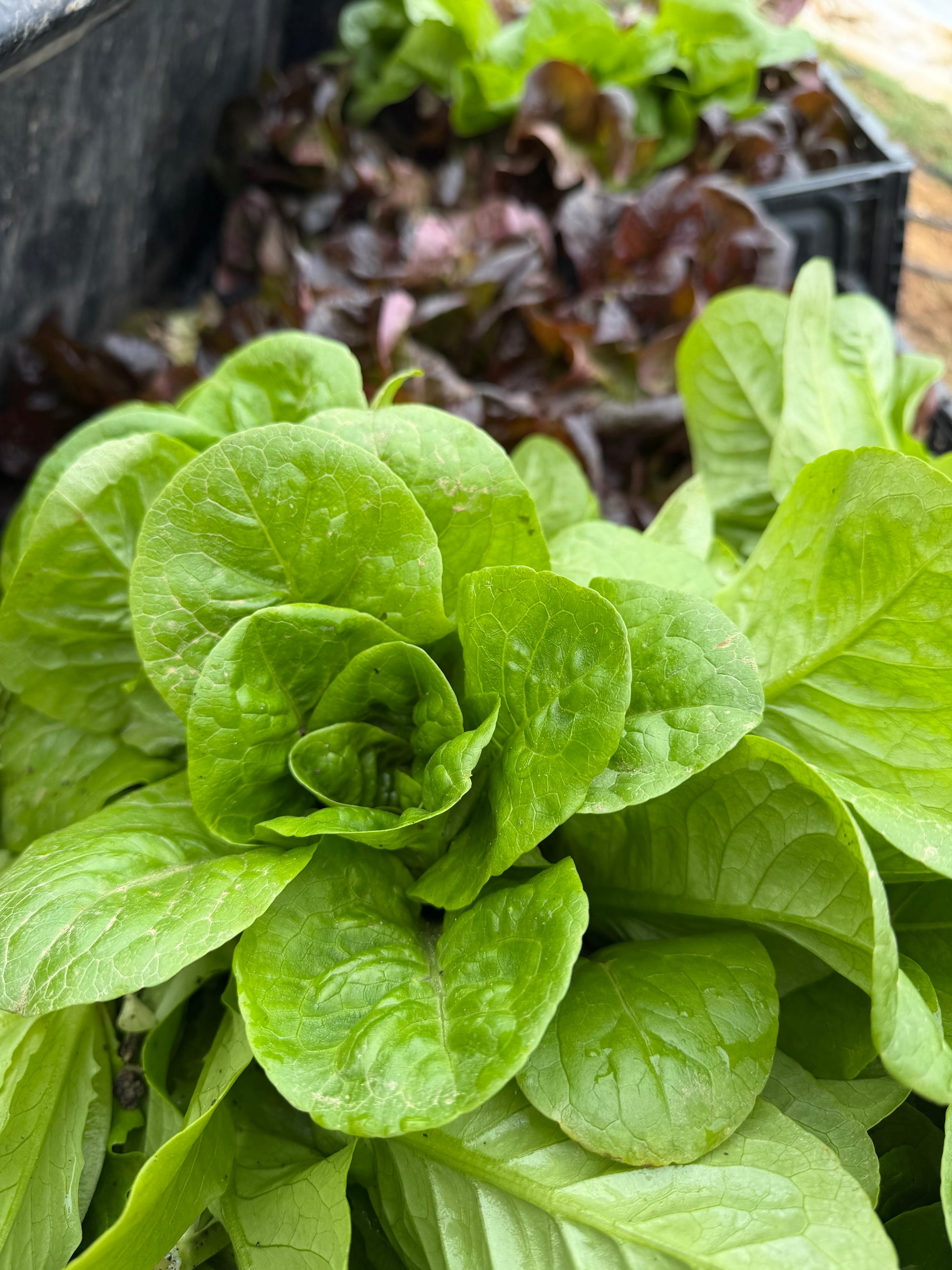 Newham: Green Little Gem lettuce. Compact heads of sweet butterhead lettuce.